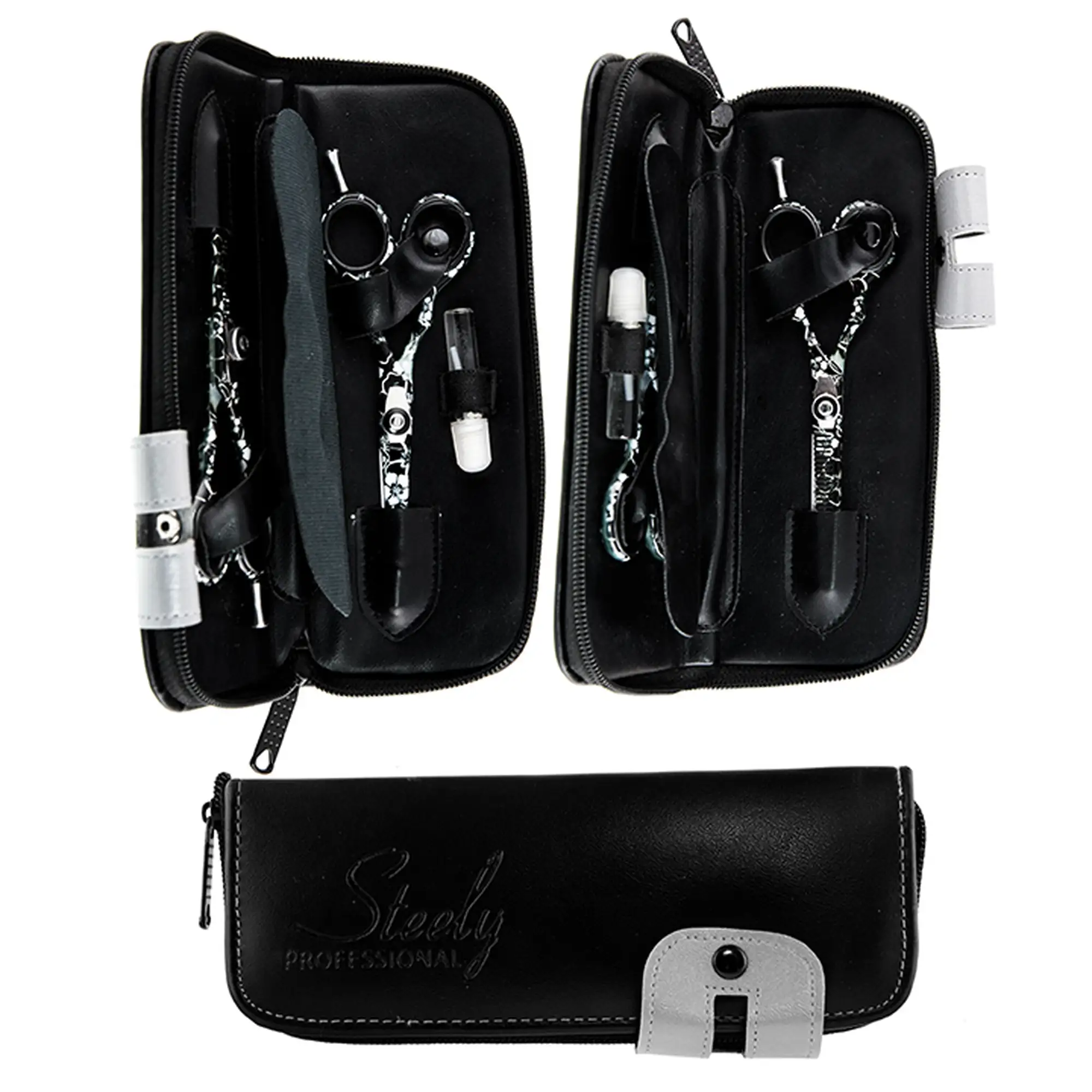 • Το σετ ψαλιδιών έρχεται σε μια πολυτελή μαύρη θήκη Steely Professional.